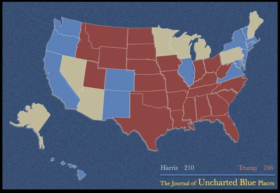 That last one is the sketchiest. Kamala Harris still has a path to victoryâbut only if Michigan, Pennsylvania, and Wisconsin all come through. And the margins in the last two aren't looking too good at the moment. It could well be that massive votes from urban areas bring her over the top, but that is not the likeliest outcome right now.