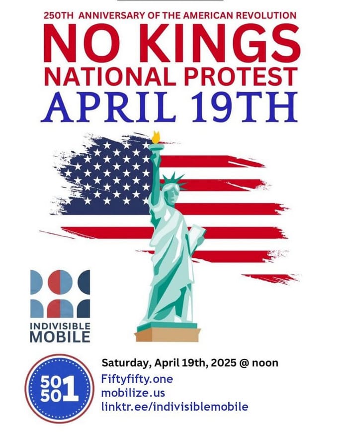 On Saturday, the 50501 movement, which organized the nationwide protests on April 5 that drew several million people, is calling for events around the country to mark the anniversary. The April 5 slogan was "Hands Off!" This time it's "No Kings."