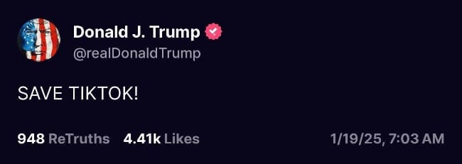 Trump message saying save TikTok