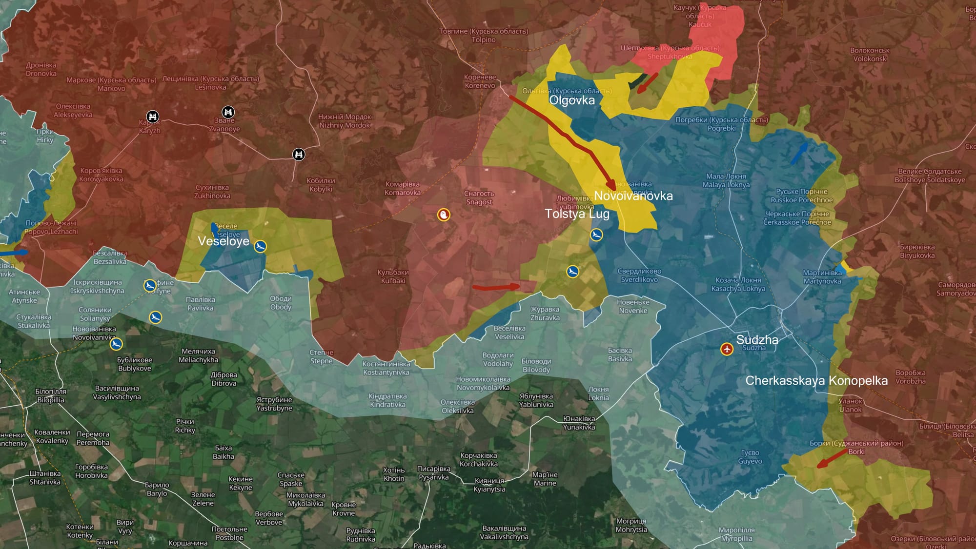 Russia has also taken control of the area that had been at the very northern tip of the incursion, but Ukraine doesn't seem to have had any significant force in the area. The larger concern is that Ukrainian troops at Olgovka now appear to be nearly surrounded by Russian forces, and if Russia controls the highway south to Novoivanoka, Ukraine's options to support—or withdraw— these forces may be limited.