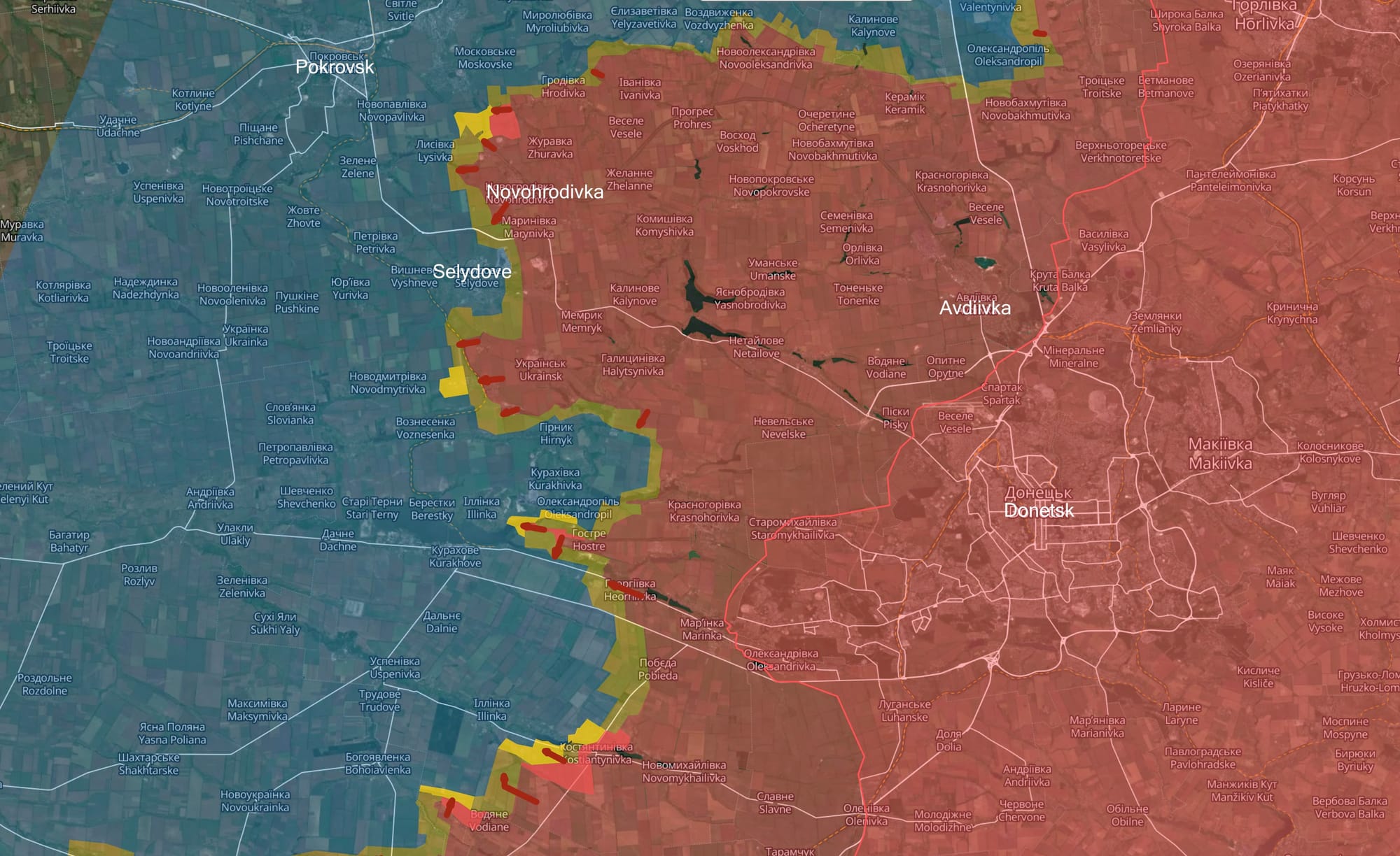 Ukraine has continued to hold the highway positions at Selydove, but the position there could become untenable in a matter of days. There are few good defensive locations between Pokrovsk and this position.