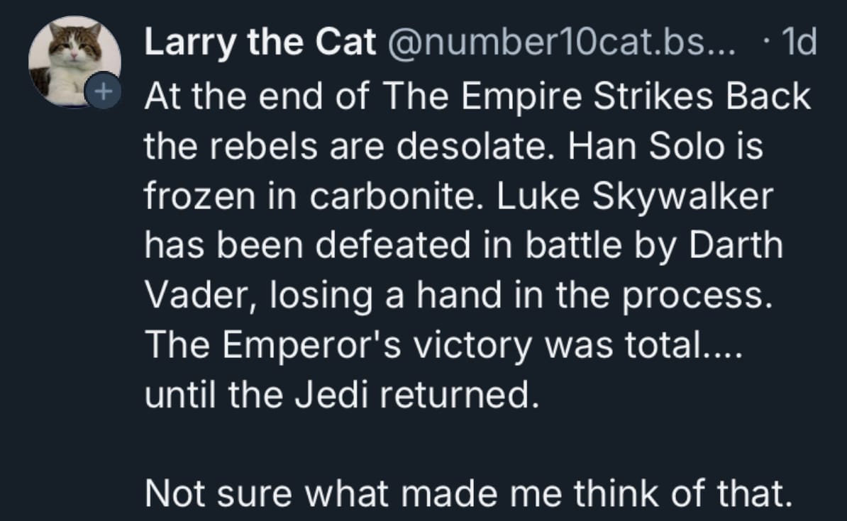 There's nothing to do now but to figure out why we failed so thoroughly and completely. We have to discover why a good candidate, with a good organization, sound messaging, a stellar debate performance, and almost flawless execution over the closing days of the campaign wasn't enough. Why gaffes and stumbles that would have derailed any other candidate a dozen times a day didn't stop Trump. Why "eating cats and dogs" didn't matter. Why threats of violence didn't matter. Why 31 felony convictions didn't matter.